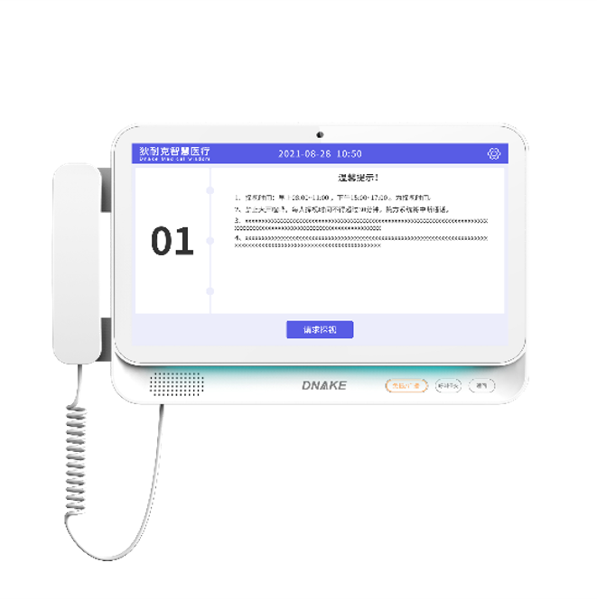 創(chuàng)新利用現(xiàn)代科技數(shù)字網(wǎng)絡(luò)技術(shù)構(gòu)建的 ICU 探視系統(tǒng),從本質(zhì)上使重癥病人得到最安全且及時的監(jiān)護(hù)和治療,大大提高了危重病人搶救成功率和治愈率,該系統(tǒng)與醫(yī)院的綜合系統(tǒng)緊密結(jié)合,形成有序的就醫(yī)環(huán)境和工作環(huán)境。軟件參數(shù):1)溫馨提示,首頁給與家屬溫馨提示信息和探視時間等信息。2)雙向可視對講,可呼叫管理機(jī)。待管理機(jī)接通后,可與其進(jìn)行雙向可視對講,等待管理機(jī)分配探視床位,